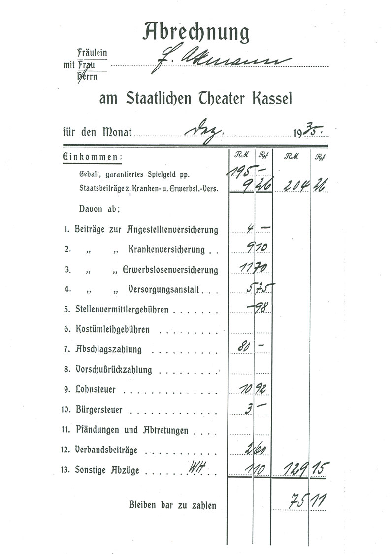 Wieviel verdiente zum Beispiel eine Tänzerin am Theater in den 30er Jahren ?