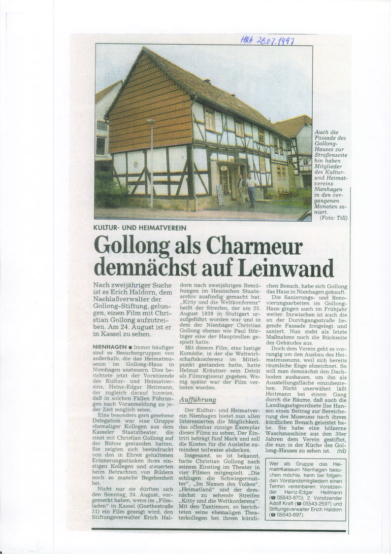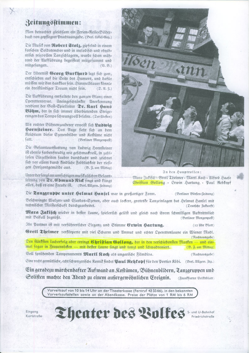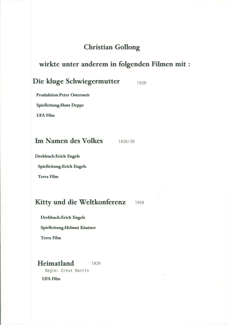Unter folgendem Link können Sie den Film "Kitty und die Weltkonferenz" von 1939 ansehen, in dem Christian Gollong mitspielte: