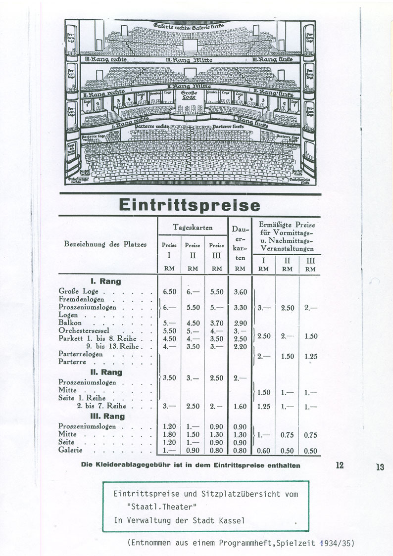 Wieviel kostete ein Theaterbesuch in der 30ern ?