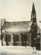 Die Kirchturmspitze war 1945 durch amerikanische Artillerie abgeschossen worden. Sie wurde erst Ende der Sechziger Jahre erneuert.